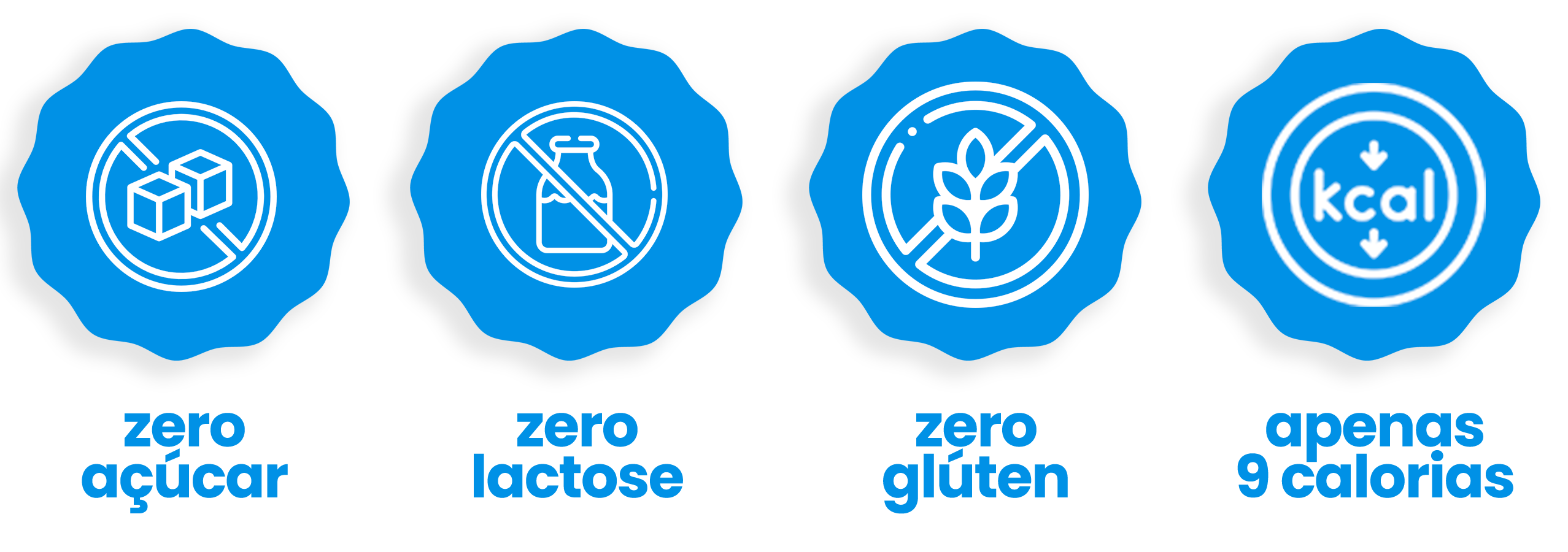 NÃO CONTÉM GLÚTEN. ZERO LACTOSE. NÃO CONTÉM CORANTES ARTIFICIAIS.
